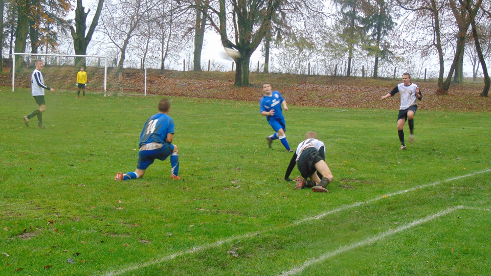 W Żółtnicy juniorzy starsi trenujący pod okiem Jacka Nogi grali z miejscowym Wiarusem. W tabeli oba zespoły znajdują się blisko siebie - Błonie 4 miejsce, Wiarus 5. Zapowiadała się ciekawa walka i tak też było, mimo, że warunki pogodowe, a także boisko były fatalne. Grało się bardzo trudno.Od samego początku do ataku przystąpili gospodarze, którzy raz po raz zagrażali bramce strzeżonej przez Kacpra Tomaszewicz. Wiele razy ratował zespół przed stratą bramki. Z siatki wyciągnął piłkę tylko raz, tak jak gospodarze, którzy stracili bramkę z rzutu karnego. Strzelcem był Dominik Woś. Na 10 minut przed końcem nasi zawodnicy mogli podwyższyć wynik meczu, ponieważ po zatrzymaniu piłki ręką w polu karnym swojej drugiej szansy z rzutu karnego nie wykorzystał Dominik. Do końca meczu wynik sie nie zmienił. Wiarus Żółtnica - Błonie Barwice 1:1.