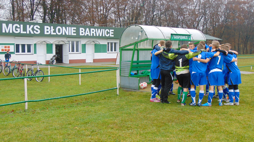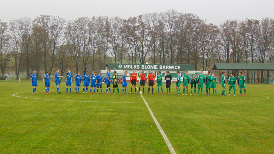 O godzinie 10 30 na Stadionie Miejskim w Barwicach swój mecz rozpoczęli podopieczni Łukasza Zbroszczyka. Juniorz młodsi na własnym boisku podejmowali lidera - AP Szczecinek. Mecz od początku był w miarę wyrównany, choć składniejsze akcje przeprowadzali goście, to jednak nasi zawodnicy jako pierwsi zdobyli bramkę. Niestety sędzia dopatrzył się spalonego. Ale co się odwlecze ... Chwilę później zawodnicy Błoni po strzale kapitana Darka Bernaciaka wychodzą na prowadzenie. Takim wynikiem kończy się pierwsza połowa. Niestety w drugiej połowie nasz zawodnik Michał Adamski został brutalnie sfaulowany i ze złamaną nogą odwieziony na Izbę Przyjęć do Szczecinka. Na boisku jedna z akcji gości - Julek chcąc wypiąstkować piłkę mija się z nią i ta wpadła na nogi Jakuba Gołuckiego, który niefortunnie skierował ją do swojeje bramki. Zawodnicy podbudowani takim obrotem sprawy zwietrzyli szansę na trzy punkty i wykorzystali to bezlitosnie w krótkim czasie strzelając 4 bramki. Mecz zakończył się wynikiem 5:1 dla AP Szczecinek.