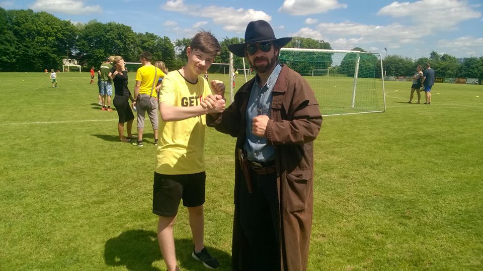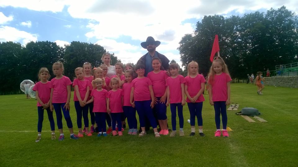 Piknik otworzył i podsumował sezon piłkarski prezes klubu Grzegorz Tomaszewicz, po czym pałeczkę przejęli spiker Krystian Czaplicki oraz trenerzy, którzy przeprowadzili rozgrzewkę oraz gry i zabawy ożywiające. Prawdziwym hitem okazały się Bumper Balls, czyli półtora metrowej średnicy, wypełnione powietrzem kule. Gra zbliżona do piłki nożnej z jednym małym wyjątkiem - nie obowiązywały faule. Zabawa była naprawdę przednia zarówno dla grających jak i oglądających, dla młodszych jak i dla dorosłych. Równolegle trwały mecze piłki nożnej pomiędzy drużynami młodzieżowymi oraz rodzicami i trenerami, a także gry i zabawy rodzinne, które przyniosły wiele uśmiechu na twarzach. Rodzice pokazali, że też potrafią się świetnie bawić. Cały czas można było malować twarze i tu dziewczęta były w swoim żywiole J. Swój pokaz tańca miały OKiT-ki, które na co dzień ćwiczą pod okiem Justyny Krzyżanowskiej. Ogromnym zainteresowaniem cieszyły się zawody strzeleckie. Udział wzięło bisko 100 osób w dwóch kategoriach, którzy strzelali pod okiem Andrzeja Zielonego. Pod wiatą przygotowany został poczęstunek. Rodzice upiekli ciasta, serwowana była kawa, herbata oraz kiełbaski z grilla. Niewątpliwe wielką atrakcją pikniku była obecność Chucka Norrisa, a konkretnie jego wierne odwzorowanie, czyli sobowtór Marcin Olpiński. Wygląd oraz ubiór sprawiły, że wszyscy chętnie się fotografowali. Byli i tacy, który próbowali słynnego uderzenia z półobrotu oraz robili szpagaty. Nie zabrakło również słynnych dowcipów o Chucku Norrisie. Na koniec gość wręczał w poszczególnych konkurencjach nagrody.
